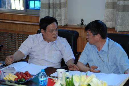 图为张荻教授与陈俊斌副校长现场讨论