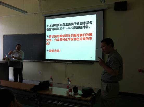材化学院教研院长坚增运教授、研究生招生办公室副主任王恒老师和材化学院院长助理陈卫星教授也来到了讲座现场。研招办副主任王恒老师就考研进程与政策、往年全国研究生考试报考情况及我校往年报考与录取情况作了相关介绍,就考研报告过程中的一些具体细节和注意事项作了详细的说明。陈卫星教授就专业课复习及学校和专业的选择等问题做了一些技术性的讲解。