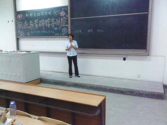 大四学生就业与考研在即,为了能对大家的就业与考研进行有针对性的指导,材料与化工学院组织专家教授为09级毕业班学生做就业与考研专题讲座,对他们在就业与考研中专业方向的选择和注意事项进行专门指导。开设讲座的专家教授有材化学院党委书记张忠老师,材化学院副院长、陕西省首批二级教授、博士生导师、陕西省 “三五人才”坚增运老师,材化学院院长助理陈卫星教授。