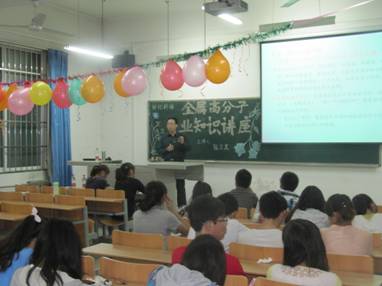 2013年4月25日晚7点在教A310, 材料与化工学院科协邀请高分子材料与工程专业教研室主任陈卫星老师为我院金属、高分子专业学生做了专业知识讲座。本次讲座旨在帮助同学们增加对自己所学专业知识的了解,使同学们明确未来职业目标规划,有50多名同学参加了此次讲座。