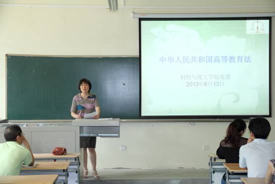 2013年6月14日,材料与化工学院召开全体教师大会进行普法教育宣传,号召大家积极学习国家的法律法规,依法规范教学活动和自身的行为,并对广大学生普法宣传和普法教育。