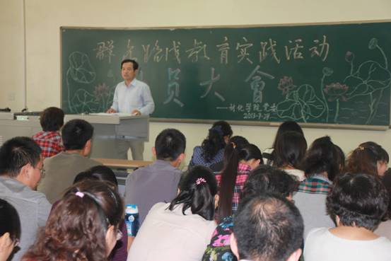 材化学院党委书记张忠从开展党的群众路线教育实践活动的意义、指导思想、目标任务、工作要求、步骤方法和组织领导六个方面做了动员讲话。任慧英部长代表校深入开展党的群众路线教育实践活动领导小组对材化学院开展群众路线教育实践活动的前期准备与开展给予了肯定,并结合学校实际提出了具体的要求。