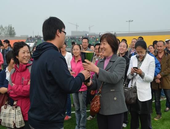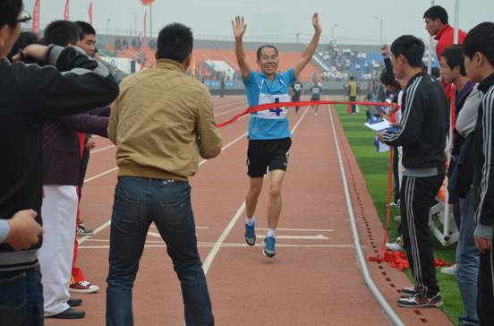 运动会的现场,全体运动健儿以饱满的激情昂扬的斗志勇于拼搏的信念全身心投入到参赛项目中,在赛道上留下一个个飞跃的背影,看台上,加油呐喊声一波高过一波,气氛紧张而热烈。最终,材化学院捷报频传。团体项目男子4×100季军,女子4×100亚军,女子4×400冠军,同时,个人项目也成绩辉煌,男子3000米周辉同学获季军,女子200米孔粉同学获冠军,女子400米席锦玲获冠军,女子跳远张瑛获冠军。教工组张治宏副书记和杨晶晶老师也获女子800米冠军。在异程异性400米接力比赛中,材化学院党委副书记张治宏老师,王国栋老师与两名同学默契配合,奋力拼搏,最终将这块金牌收入囊中,在教工踏板接力、教工障碍迎面接力中,我院教师也取得了第二、第一的好成绩。最终,材化学院教工队与学生队都荣获了总评第一的好成绩。