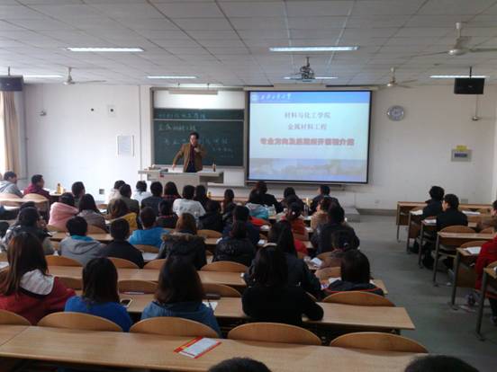 2013年11月15日,材料与化工学院在11级金属材料工程专业学生进行方向选择之际,邀请金属材料工程专业研室副主任李炳老师为金属材料工程专业同学在教2-206做专业发展方向讲座。