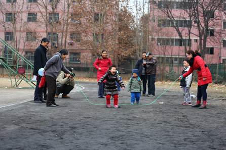 活动内容设置有老带小100米跑,有跳小绳、跳大绳,扔沙包等多项体育运动项目,活动过程中大家踊跃参加,没有了年龄界限,大家仿佛都回到了童年,在妙趣横生的亲子同乐比赛中让老师们放松心情,缓解压力,获得健康,在游戏中体味快乐,在关爱中体味亲情。