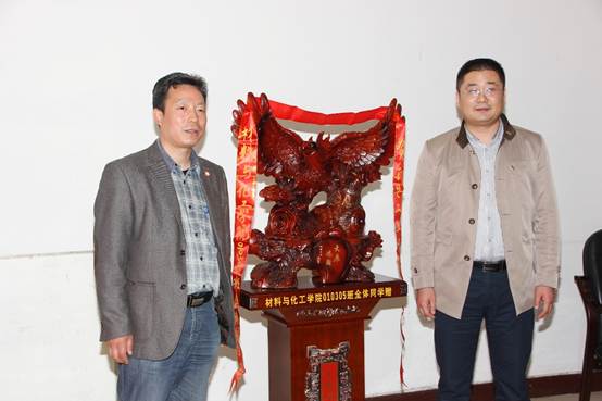 最后,010305班校友给学院捐赠了“大展鸿图”木雕,共同祝愿西安工业大学鹏程万里、明天更加灿烂、辉煌;祝愿全校的老师和同学们身体健康、工作顺利、心想事成!