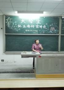 2015年9月22日、23日晚6:00,材料与化工学院在教1-101召开毕业生考研就业宣讲会。宣讲会分别由研究生部刘俊英、材料与化工学院党委书记张忠、材料与化工学院副院长陈卫星三位老师主讲,12级金属材料专业、材料化学专业、环境工程专业学生分别参加。