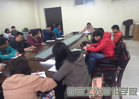 会议开始,刘强珺老师就刚结束的卫生检查做了总结。由于近期春季流行疾病泛滥,刘老师希望同学们可以注意个人以及宿舍卫生,为自己创造一个干净整洁的学习环境。紧接着,刘老师强调了各班留级生住宿情况,各班长以及团支书应当积极协调,让留级生们与本班学生一块儿学习生活,找到班级团体的归属感。其次,根据上周班长团支书的日常工作与考勤签到情况,刘老师希望各班长团支书切莫产生消极懈怠的情绪,摆正心态认真做好本职工作,并在此基础上更细致入微的为老师与同学们服务。最后,刘老师传达了2016年度西安工业大学评优工作,并强调了同学们保持优异的学习成绩,积极钻研,努力进步,以此来获得荣誉。