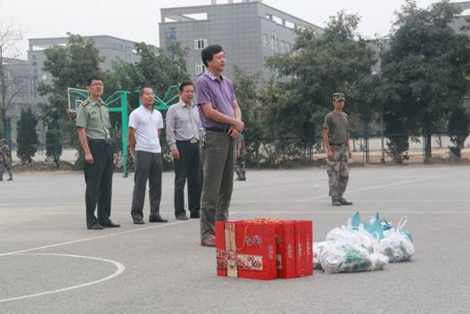 每逢佳节倍思亲,为缓解2016级新生的思乡之情,提升新生军训士气,关爱新生成长,让他们感受到学院如家般的温暖。9月12日上午,材料与化工学院党委书记路金龙、院长坚增运、副书记张治宏、16级辅导员王国栋、王丹丹在新生军训场,慰问了带队教官以及正在参加军训的新生并向他们赠送月,表达了学院的关心、鼓励和中秋祝福。