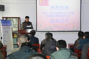 首先,现任党委委员党委书记路金龙同志宣读了校党委组织部《关于同意召开中共西安工业大学材料与化工学院委员会换届选举大会的批复》,并代表本届党委向大会作工作报告,会议审议通过;然后,党委组织委员刘增超同志向大会作了《材料与化工学院关于党费收缴、使用和管理情况的报告》,会议审议通过;接着,大会审议并一致通过了《中共西安工业大学材料与化工学院委员会换届选举办法》,通过了总监票人、监票人、计票人人选;最后,与会党员通过无记名投票方式在8名候选人中差额选举刘增超、张治宏、陈卫星、陈建、郭永春、梁艳峰、路金龙等7名同志组成新一届委员会委员。