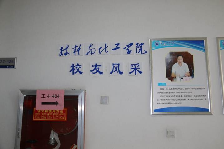 近日,为了展示优秀校友风采,激励在校学生潜心向学,积极规划自己的未来,材料与化工学院在工Ⅲ楼与工Ⅳ楼四层过道专门设置校友风采展示区域,并将白长治、王世荣、金铭、刘峰、周珑、李涛、毛彦亮、安国等八名优秀校友及其事迹向全院师生展示,为四楼过道增添了一道靓丽的风景线。