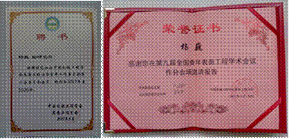 与会期间,杨巍博士被聘请为“中国机械工程学会表面工程分会青年工作委员会第二届委员会委员”,并受邀做了题为“铝、镁合金微弧氧化着色陶瓷层的制备与表征”的分会学术报告,得到与会人员的肯定与响应,在报告后与中科院兰州化物所、中科院宁波材料所、西安交通大学、燕山大学、安徽工业大学、江苏大学、东莞市汇成真空科技有限公司等单位的参会代表进行了广泛交流,对提升我校在国内轻合金表面改性领域的影响力起到了一定的积极宣传作用。