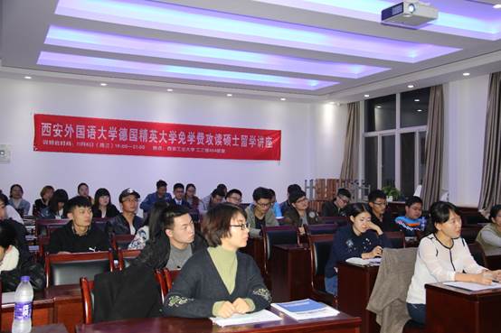 2017年11月8日,应材料与化工学院坚增运院长之邀,西安外国语大学德国留学项目负责人孙晓龙一行3人在工3-404召开德国出国留学项目宣讲会,前来参加宣讲的还有西外德国项目常浩和马倩两位老师,材料与化工学院本科三年级、四年级共计50余人参加了此次宣讲会。