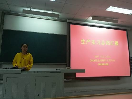 2018年5月8日,材料与化工学院在教2-212召开2015级金属材料工程专业校外生产实习报告会。报告会由夏峰老师主持,2015级金属材料工程专业全体学生参加了此次报告会进行了汇报。