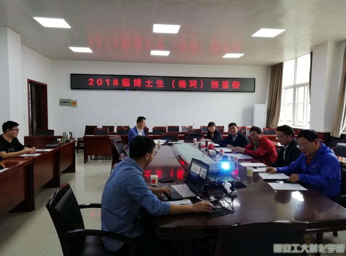 近日,材料与化工学院在工3-410室举行了2018届博士学位论文预答辩,答辩委员会由西安理工大学吕振林教授、西安工业大学范新会教授、研究生院副院长惠增哲教授、科技处处长陈建教授、于灵敏教授、教务处副处长李炳副教授组成,博士研究生杨珂参与此次预答辩会。