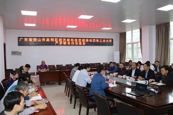 洽谈会上,路书记首先介绍了学校的办学历史和基本情况,郭副院长对材化学院的科研团队和相关成果进行了介绍,科技处领导介绍了学校总体的科研状况和科技成果转化情况;随后,仇局长介绍了高明区总体概况和产业布局以及参加洽谈会的企业情况,并表示会加强高明区相关企业和我校教师的广泛交流,稳步推进校企间的产学研合作;最后,双方与会领导就产学研合作交流进行了沟通。