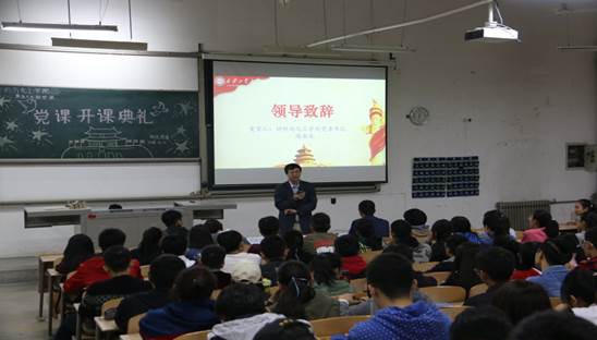 为响应习近平总书记号召,增强当代大学生对共产主义的理解,提高对中国特色社会主义的认识。西安工业大学材料与化工学院于2018年10月11日在教一-205召开以“不忘初心跟党走 梦圆西工新时代”为主题的第五十七期党课开学典礼。材料与化工学院党委书记路金龙书记出席开学典礼, 辅导员组长王国栋老师及17级辅导员刘强珺老师参加,会议由材化团委组织部干事成思懿主持。