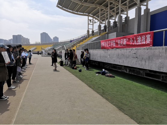 为调动同学们对体育活动的积极性,增强学生身体健康素质,营造积极向上的竞争意识,同时为接下来的材料与化工学院“吉尼斯”个人挑战赛选拔出优秀运动员。西安工业大学材料与化工学院于2019年4月1日在未央校区田径场成功举办“吉尼斯”个人挑战赛。学院党委副书记张艳霞老师、辅导员组长王国栋老师、团委书记段强老师、年级辅导员等出席本次开幕式,16级17级和18级部分学生参加本次比赛。