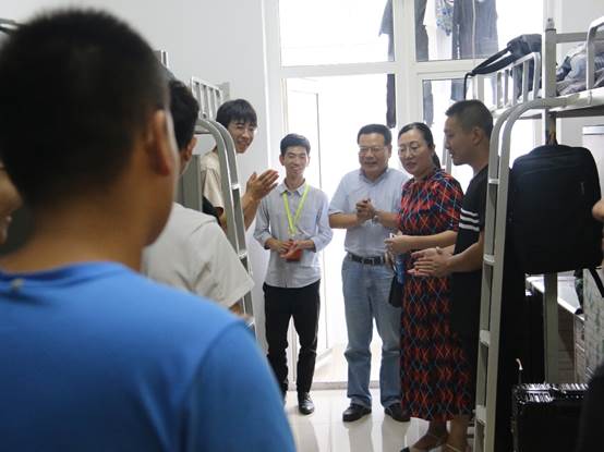 9月3日晚,材化学院党委书记惠增哲、党委副书记张艳霞、新生辅导员陈远林前往学院2019级本科生新生宿舍看望了学院2019级新生。
