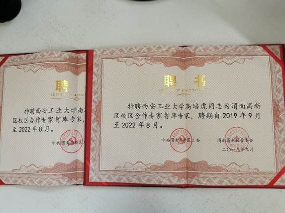 我院常芳娥、冯启蒙、高培虎、何子博、南瑞华、杨晶晶、蒋丹烈、段洪波、陶栋等9位教师受聘为“渭南高新区校区合作专家智库专家”,并颁发聘书。
