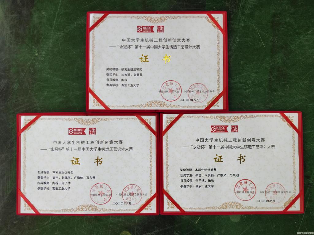 近日,由中国机械工程学会主办、中国机械工程学会铸造分会承办的中国大学生机械工程创新创意大赛暨“永冠杯”第十一届中国大学生铸造工艺设计大赛评审会议在辽宁省沈阳市举办。材料与化工学院积极组织团队并代表学校首次参加比赛。疫情期间,为了不耽误赛程,所有参赛同学在指导教师何子博、陶栋老师的“远程指导”下,克服不能在专业计算机上进行大型件模拟优化设计的困难,积极配合,借助互联网顺利完成了本次参赛作品的设计、提交和评比,最终荣获全国三等奖一项和全国优秀奖两项。其中研究生组沈方建、张嘉晨同学完成《主轴箱》获得三等奖,本科生组高宇、赵珮淇、卢豫帅和石东升等同学完成的《吸阀壳体》获得优秀奖,张哲、宋其昌、严凯义和马凯迪等同学完成的《回转盘》获得优秀奖。