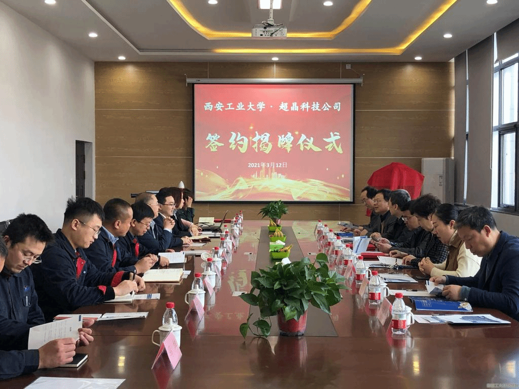 3月12日,西安工业大学与西安西工大超晶科技发展有限责任公司产学研协同创新中心·研究生联合培养基地共建框架协议签约暨授牌仪式在超晶科技公司举行。我校副校长祁玉龙、校长助理张群、材化学院领导班子成员、科技工作部有关负责人以及超晶科技公司董事长薛祥义、总经理周中波等公司领导和在超晶工作的部分校友代表参加了此次仪式。