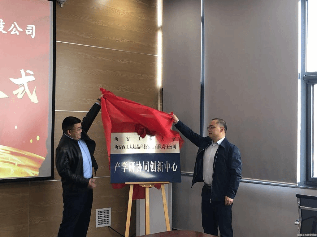 随后,祁副校长和薛董事长分别代表双方签署了西安工业大学与西安西工大超晶科技发展有限责任公司产学研协同创新中心、研究生联合培养基地共建框架协议,并为产学研协同创新中心揭牌。