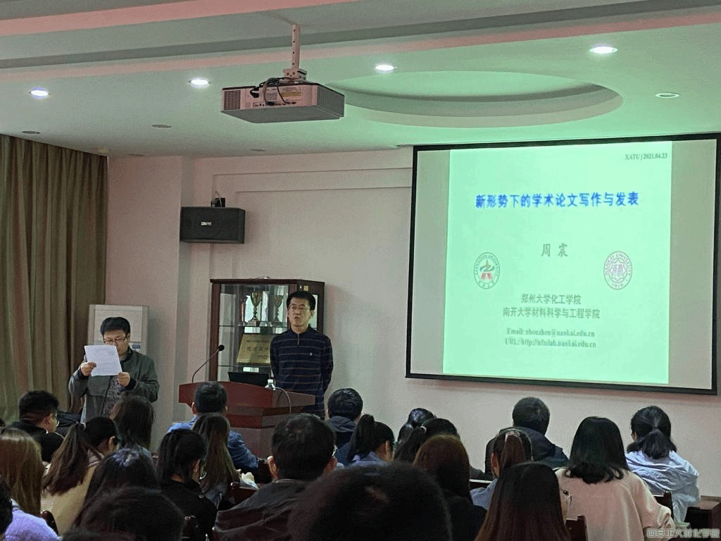 2021年4月23日下午四点,材料与化工学院邀请郑州大学周震教授来材料与化工学院给全院师生做《新形势下的学术论文写作与发表》学术报告。