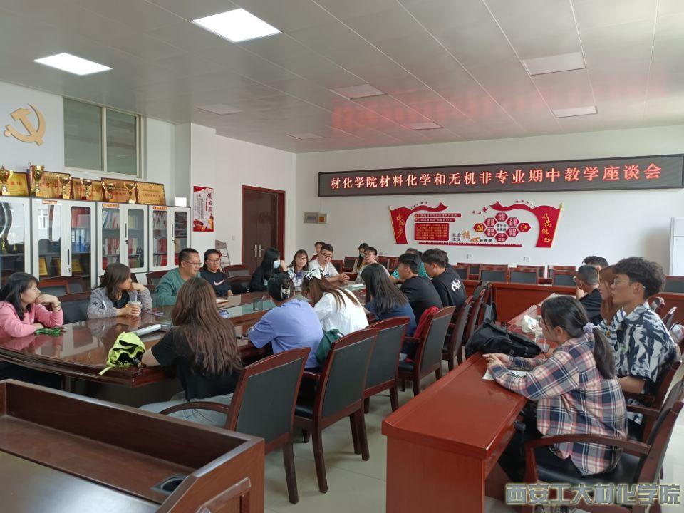 为推进2020-2021学年期中教学检查工作的稳步落实,加强学院对学生学习和生活上的了解,促进师生之间的交流,西安工业大学材料与化工学院于2021年5月7日中午12:10在工3-410组织召开期中教学座谈会。材料与化工学院材料化学和无机非金属材料专业的老师及各班级学生代表参加本次会议。