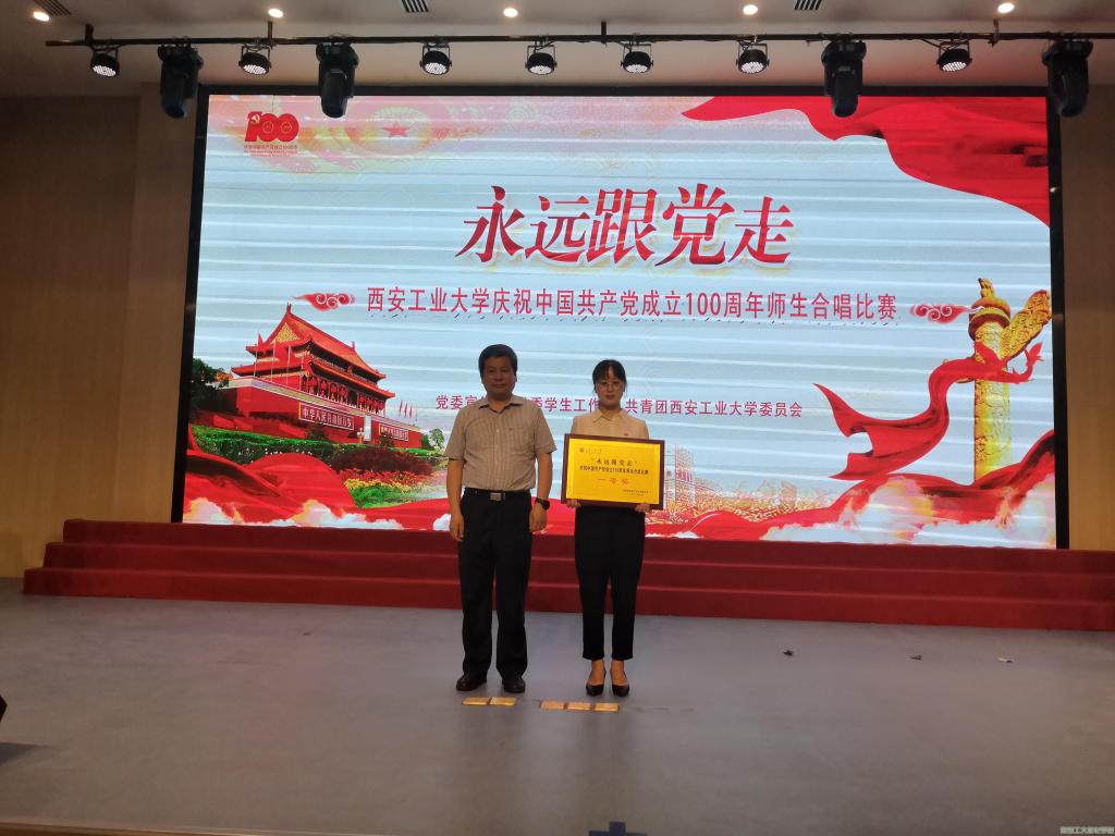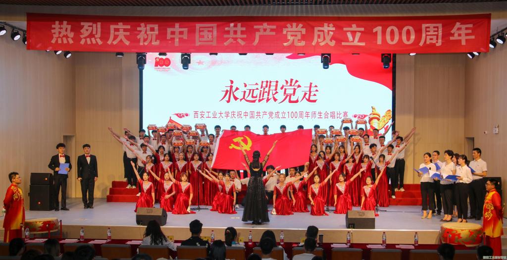 为庆祝中国共产党成立100周年,培养大学生的爱国主义情感,提高学生的团结协作能力,促进学生综合发展,推动校园精神文明建设的发展,西安工业大学于2021年6月11日举办“永远跟党走”庆祝中国共产党成立100周年师生合唱比赛。材料与化工学院19级代表队参赛,材料与化工学院党委书记呼晓青、辅导员以及学院专职教师等共同参与合唱比赛。