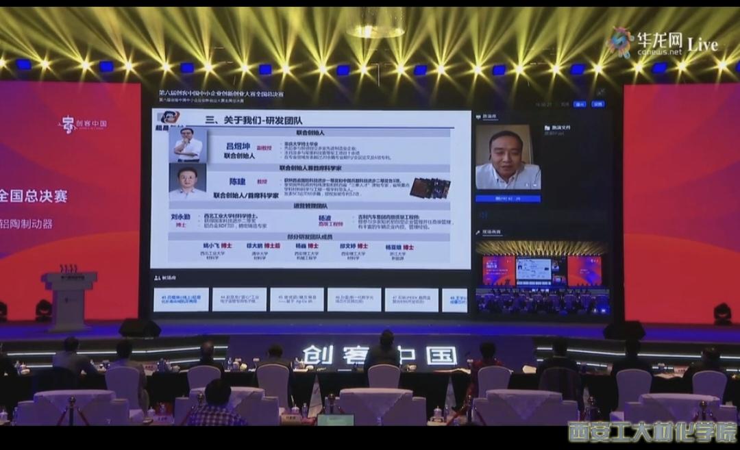 2021年11月1日,工业和信息化部举办了第六届“创客中国”中小企业创新创业大赛全国50强决赛,材化学院吕煜坤副教授团队的“轻量化长寿命城轨及商用车纳米铝陶制动器项目”成为陕西省入围全国大赛50强的唯一参赛项目,最终获得第六届“创客中国”中小企业创新创业大赛全国总决赛二等奖的优异成绩。