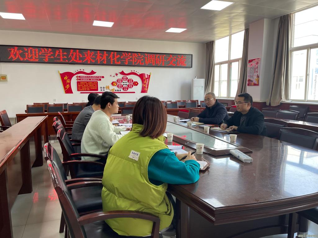为深入了解材料与化工学院“六进四有”、“四学四星”工作开展情况,促进学生工作高质量发展,2021年11月18日,党委学生工作部(学生处)副部长郭克、管理科科长靳永军一行到材料与化工学院走访调研“六进四有”“四学四星”等工作开展情况,材料与化工学院党委副书记陈卫星、全体辅导员参加本次调研活动。