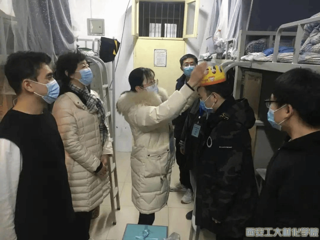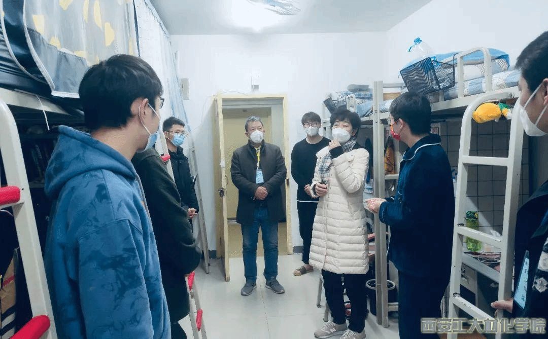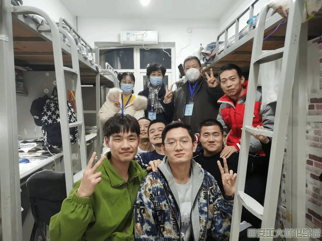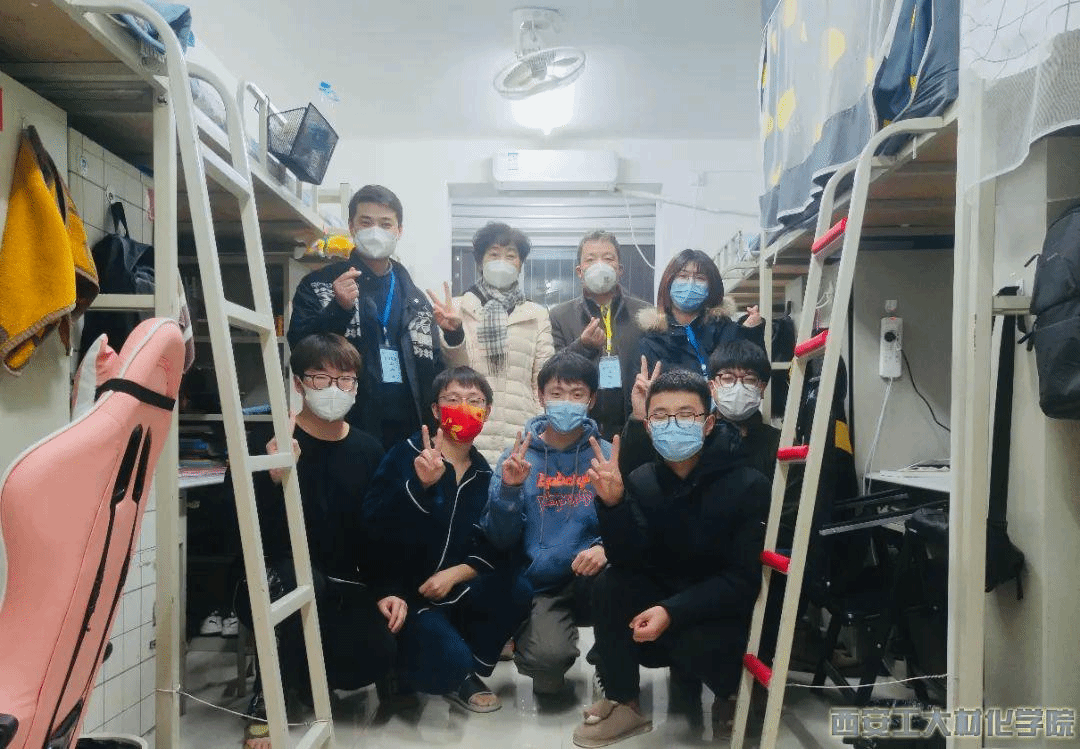 12月27日,疫情形势加重,材料与化工学院党委书记呼晓青、副书记陈卫星和五名本科辅导员、一名研究生干事立即回家收拾好行李,入住学院办公室和学生宿舍。八位老师驻扎学校后,逐一走访了学院所有学生宿舍,与学生谈心谈话,深入了解学生思想动态,密切关注学生身心健康状况,耐心解答疫情防控政策、期末考试、学校物资保障等问题,对学生遇到的实际困难给予及时帮助;并于考研、新年和新学期前夕深入走访学生宿舍,为学生送去暖心关怀和新年礼物。