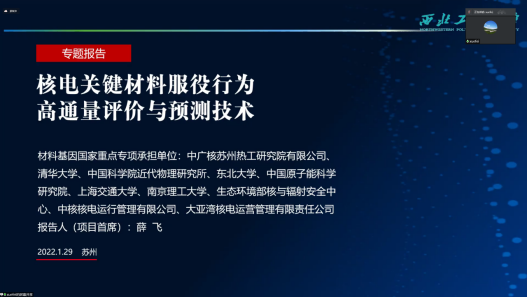 为进一步提升寒假期间我院教师科研能力,打造高水平的科研队伍,材化学院邀请西北工业大学薛飞教授,与科技工作部共同举办了《核电关键材料服役行为的高通量评价与预测技术》线上学术讲座。会前,科技工作部协助我院进行了大量的宣传工作,2022年2月9日19:30,来自材料与化工学院的60余位教师和硕博生参加讲座,讲座由学院党委副书记陈卫星主持。