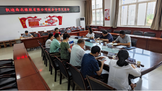 继5月18日学院专业教师代表赴咸阳延长石油凯迪西北橡胶有限责任公司(简称公司)进行项目交流与访企拓岗促就业工作并达成了多项合作意向后,6月9日,公司副总经理付宝强、副主任王庆、主管陈娜一行来我院开展下一步合作洽谈。学院院长惠增哲、书记呼晓青、副院长杨忠及各专业教师共计8人参会。