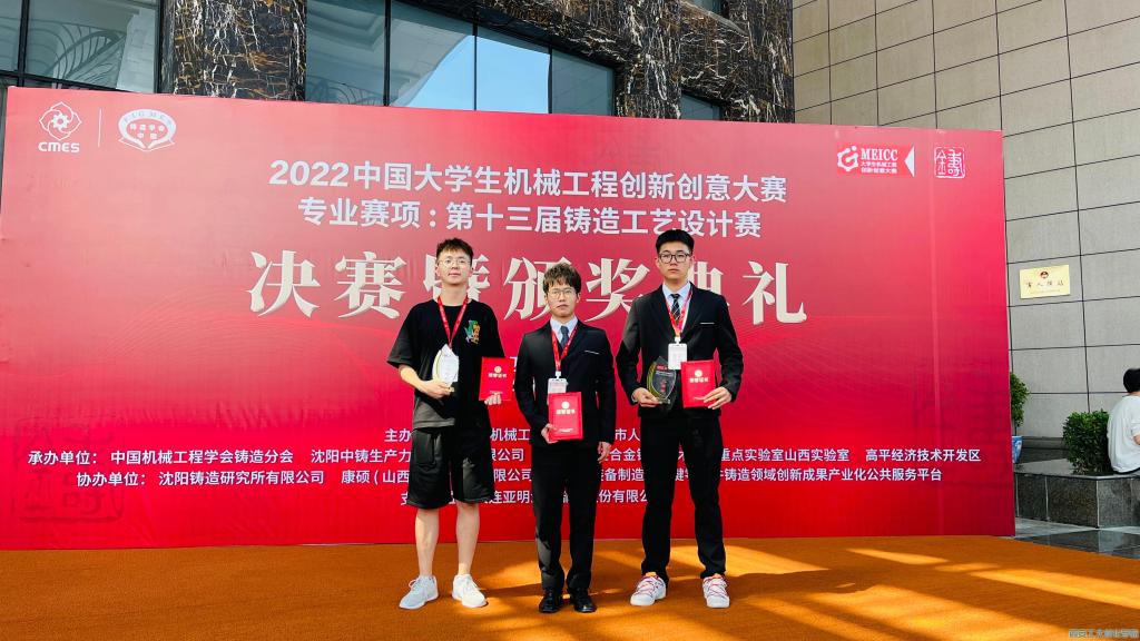 “2022中国大学生机械工程创新创意大赛专业赛项:第十三届铸造工艺设计赛”是教育部公布的赛事之一,国家级A类比赛,2022年度决赛终评会议暨颁奖典礼于7月2-5日在山西省高平市举办。今年我校材料与化工学院团队经激烈角逐后共获得两个二等奖,两个三等奖。