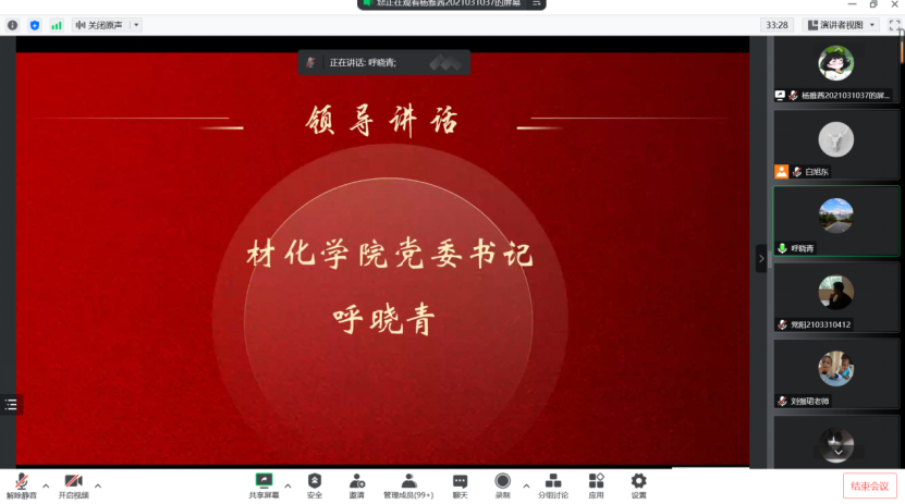 为了加强对入党积极分子的培训工作,增强学生党员干部队伍的建设,材料与化工学院分党校于2022年11月1日线上召开第六十五期入党积极分子培训班开班典礼。材料与化工学院党委书记呼晓青、2021级辅导员刘强珺老师出席本次会议,培训班全体成员参加,会议由学生干部杨雅茜主持。
