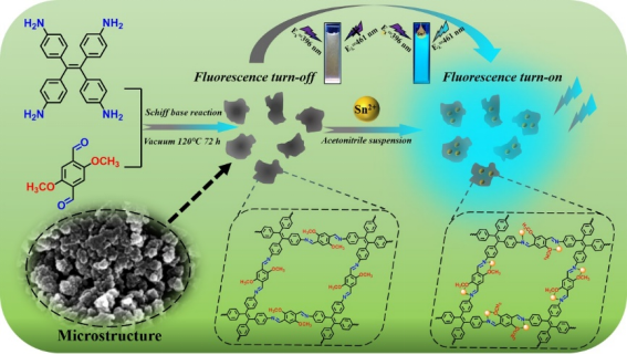 文章通过溶剂热合成法制备了一种具有高比表面积的新型共价有机框架材料COF-ETTA-DMTA,在检测Sn2+时显示出选择性好、灵敏度高、重现性好等特性。此外,该材料对检测罐头食品方面也显示出良好适用性,在食品检测领域具有良好的潜在应用价值。