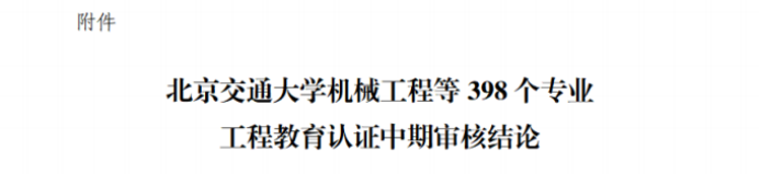 近日,中国工程教育专业认证协会发文《关于公布北京交通大学机械工程等398个专业工程教育认证中期审核结论的通知》,公布了2022年398个认证有效期为“2020年1月至2025年12月(有条件)”的专业通过了工程教育专业认证中期审核结论。其中,我院高分子材料与工程专业顺利通过工程教育认证中期考核,继续保持有效期至2025年12月。