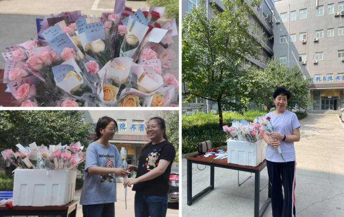 “老师,祝您教师节快乐!”、“老师,您辛苦了!”、“老师,祝您身体健康!”一声声祝福传递着同学们对老师们的敬爱与真挚祝福。阵阵花香沁人心脾,声声祝福感人肺腑,在秋日的阳光中,每一位老师都倍感温暖,满面笑容。
