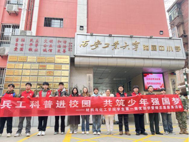 弘扬雷锋精神,争做时代新人。在第61个学雷锋日来临之际,材料与化工学院师生党员走进西安工业大学附属小学开展“兵工科普进校园 共筑少年强国梦”学雷锋志愿服务活动,青年党员志愿者将兵器知识、兵工精神带进课堂。材料与化工学院党委副书记梁艳峰、学生第一党支部书记刘强珺、学院党委组织员贾心洁参加活动。