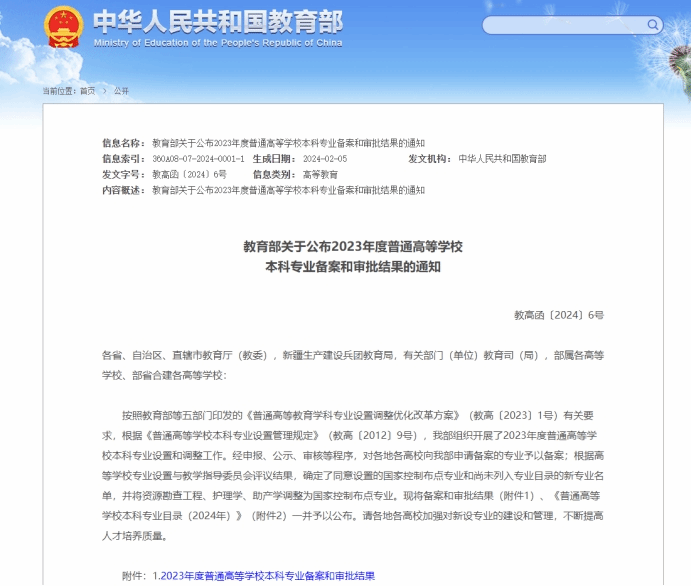 根据教育部下发《关于公布2023年度普通高等学校本科专业备案和审批结果的通知》(教高函〔2024〕6号),我院申请的“新能源科学与工程”专业获批教育部备案。