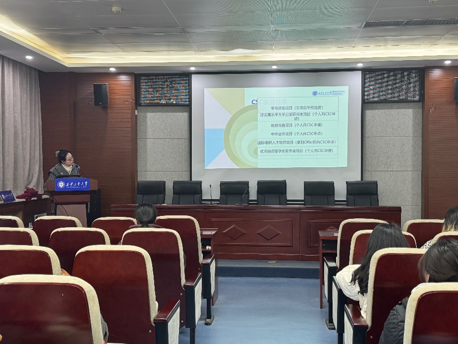 会上,郑瑞涓老师详细介绍了创新型人才国际合作培养项目和促进与俄乌白国际合作培养项目的项目的申请方式、选拔条件、申请材料要求等事项,为同学们提供了清晰的申请指南。