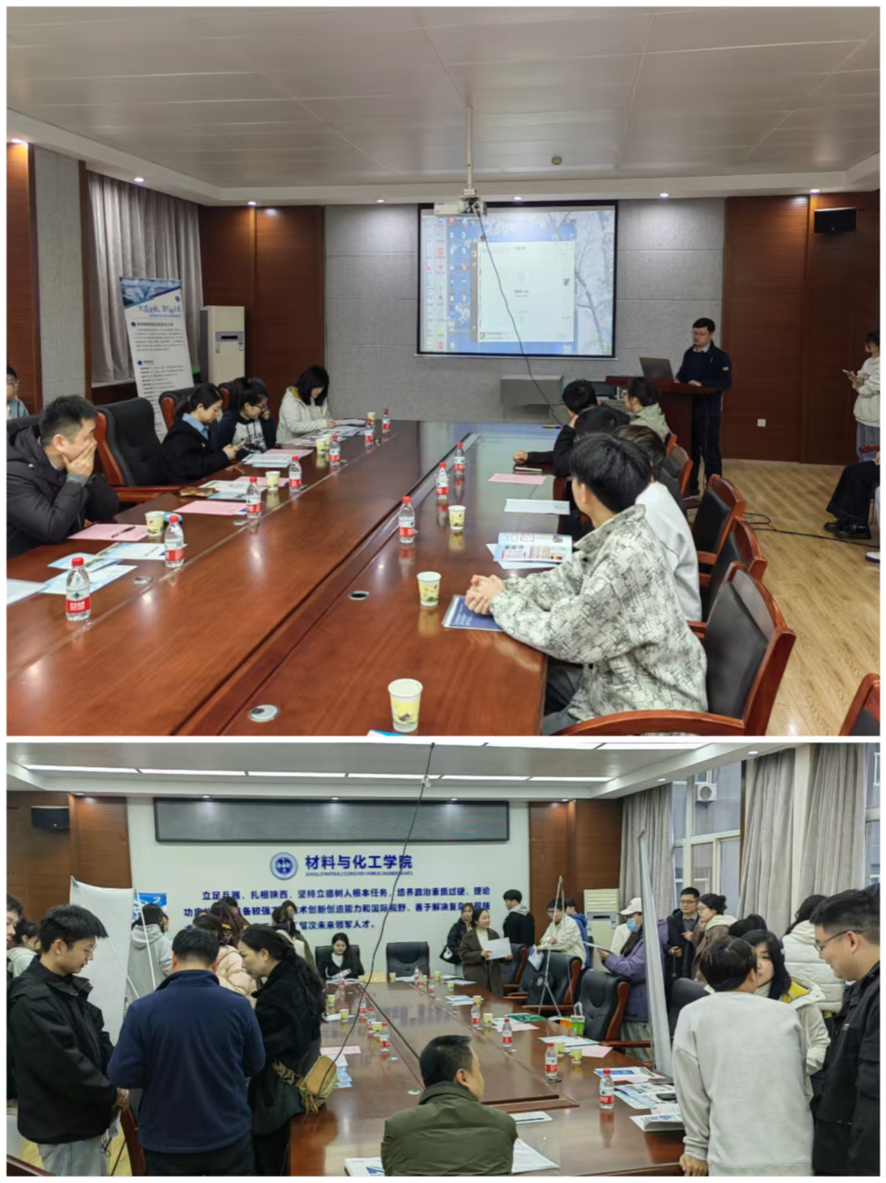 宣讲会上,李经理通过视频,从公司的地理位置、发展概况、企业文化、招聘岗位、企业荣誉、员工发展、薪资福利等多方面对作了系统介绍,并对此次招聘毕业生提供的岗位和招聘要求、面试签约步骤作了细致阐述。会后,5名参会学生投递简历,与企业招聘负责人主动交流,于工3-413开展了线下面试。