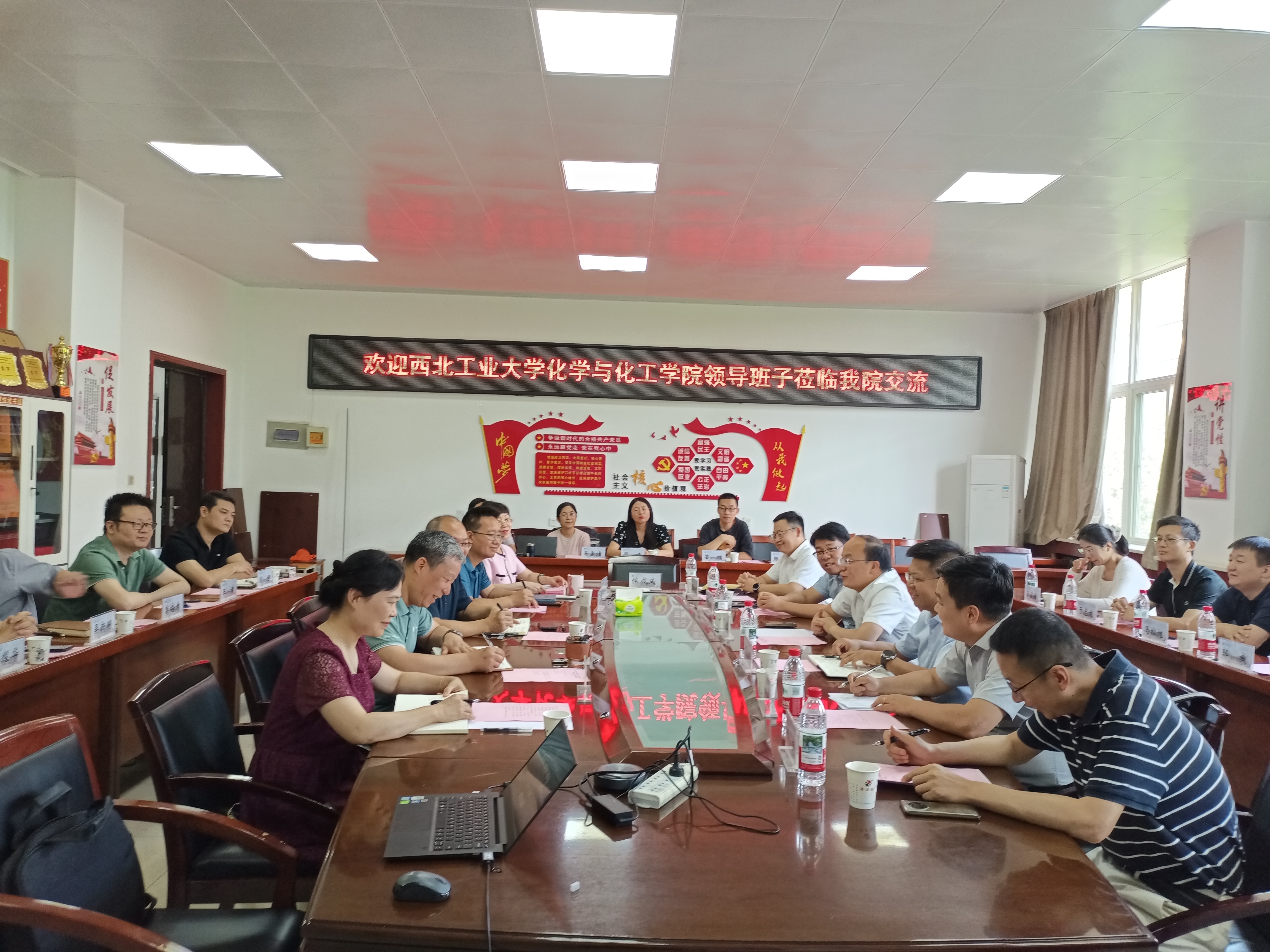 为了深化校际交流合作,推动党建工作、科技创新及人才培养等方面的资源整合与协同发展,2025年6月16日上午,西北工业大学化学与化工学院院长顾军渭、党委书记傅茂森带领学院班子成员、院长助理、办公室负责人等莅临我院开展调研交流。学院院长杨忠、党委书记陈卫星等学院班子成员、院长助理、办公室主任、组织员及教师代表参加了此次调研座谈。座谈会由陈卫星主持。