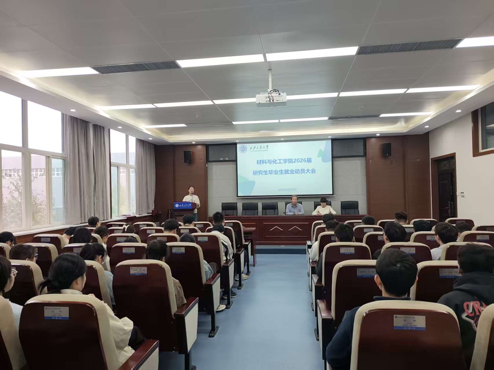 为帮助2026应届生准确把握就业形势,明确职业发展方向,增强就业竞争力,9月26日下午,材料与化工学院在工四204会议室召开研究生毕业生就业动员大会。学院党委书记陈卫星、副院长王萍及全体研究生毕业生参加会议。会议由研究生辅导员胡娜老师主持。