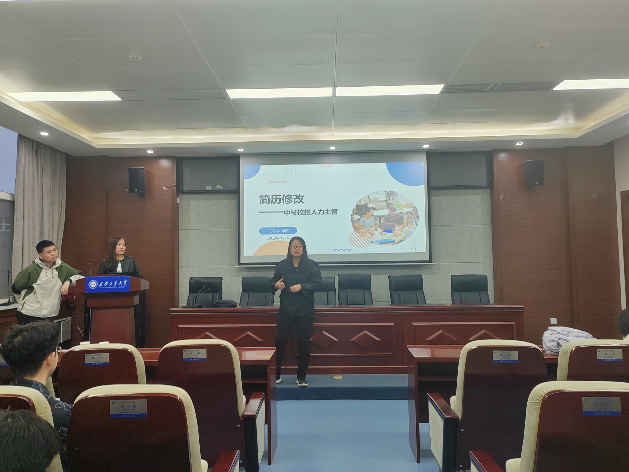 为帮助同学们掌握简历撰写技巧、提高面试通过率,提升我院学生的求职竞争力,11月6日下午,学院特邀中材科技风电叶片股份有限公司人力主管杨丽女士开展了一场简历修改与面试指导专题讲座。本次活动旨在通过行业资深人事的专业视角,为同学们的求职之路精准赋能。