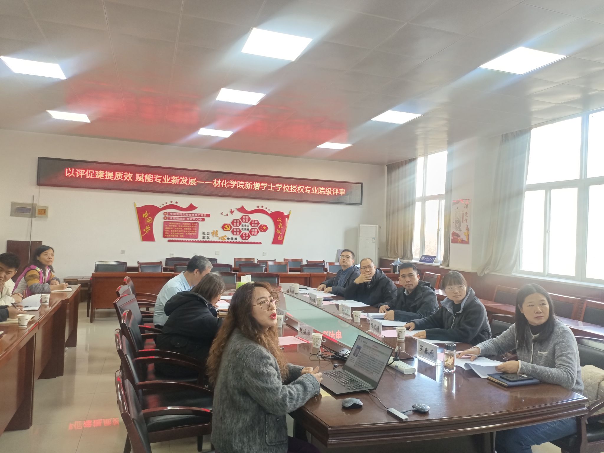为深入落实“以评促建、以评促改、以评促管、评建结合、重在建设”核心方针,扎实推进新办专业内涵建设与质量提升,11月20日上午,材化学院在工3-410会议室召开新增学士学位授权专业院级评审会。5位校内外资深专家组成评审组,对光电信息材料与器件、材料智能技术两个本科专业进行集中评议。会议由学院副院长杨巍主持,学院领导班子、专业负责人、骨干教师及教学管理人员全程参会。