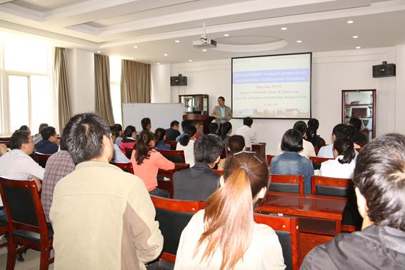 5月8日,中国电子学会应用磁学分会秘书长、北京科技大学博士生导师王守国教授应邀在材料与化工学院作题为“垂直各项异性磁性多层膜及自旋相关输运性质的研究”的学术报告。报告会由材料与化工学院党委书记路金龙主持。材料与化工学院副院长陈建及部分教师、研究生、本科生参加了此次学术讲座。