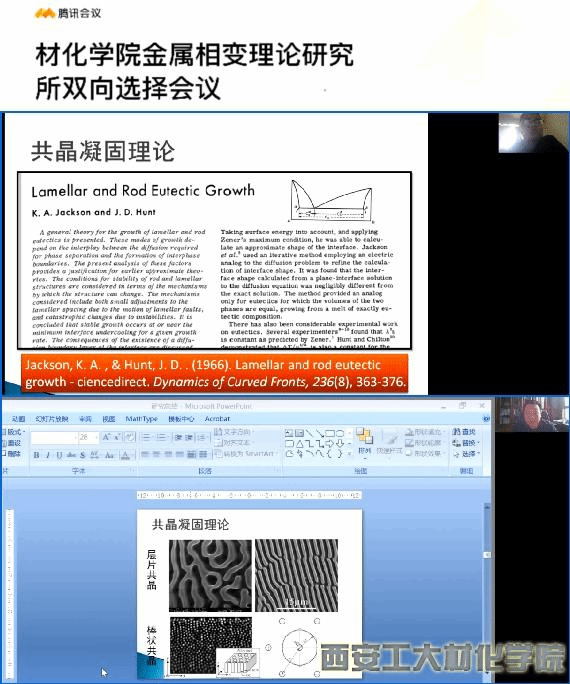 2022年4月22日下午,材料与化工学院通过线上会议举行了“金属相变理论研究所”双向选择会。来自西北工业大学材料学院的刘峰教授团队与我校材料与化工学院的六名教师参加了本次会议,会议由材料与化工学院副院长杨忠教授主持。